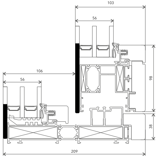- Технологичная фурнитура: Система адаптирована под европейские стандарты (Европаз V.01), что позволяет интегрировать надежные механизмы STAC для плавного и легкого скольжения массивных створок.