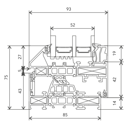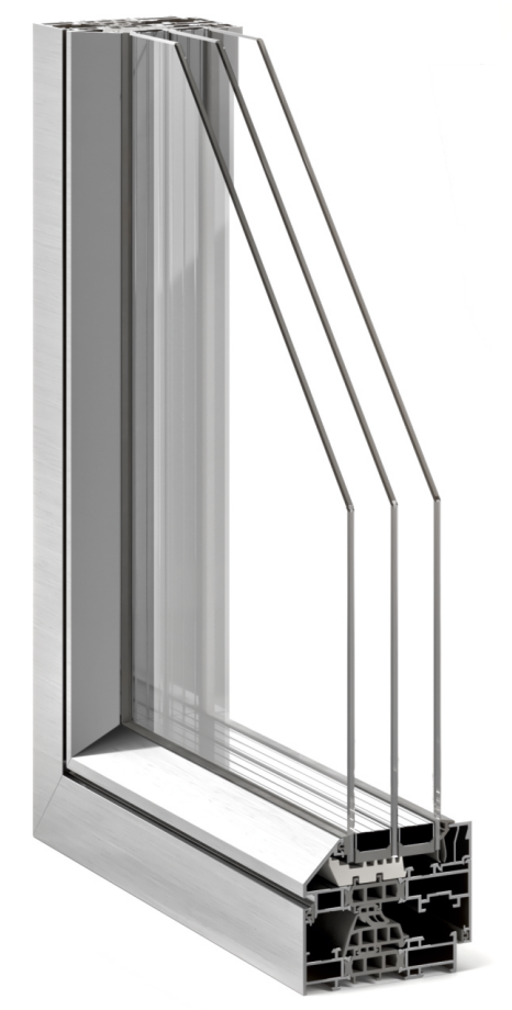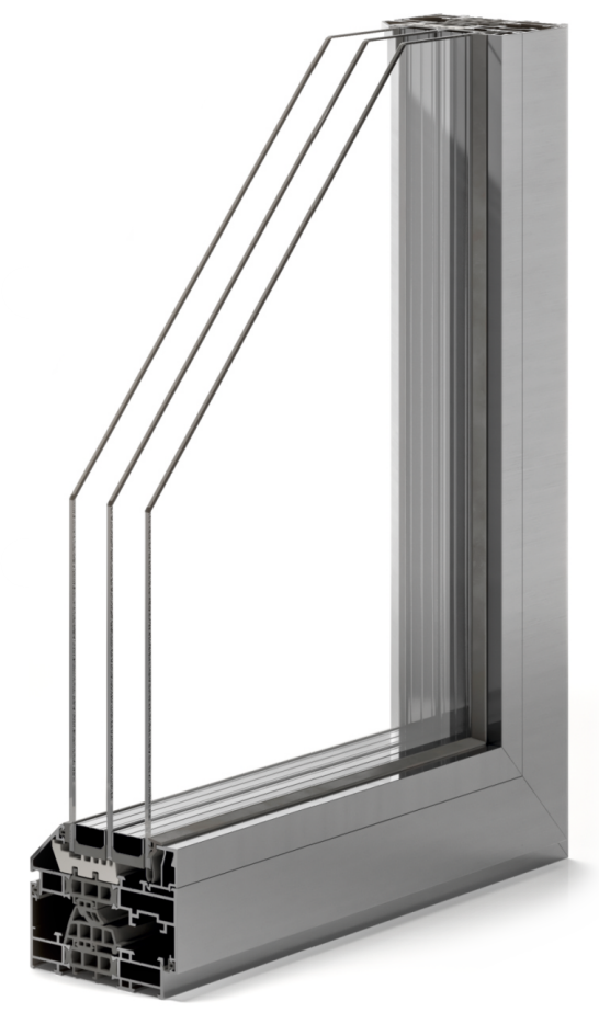 - Элегантная компактность: Высота профиля всего 75 мм в сочетании со скошенными гранями визуально увеличивает световой проем.