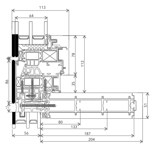 • Масштабность: Конструкция позволяет устанавливать крупногабаритные стеклопакеты толщиной 70 мм, что идеально подходит для панорамного остекления.