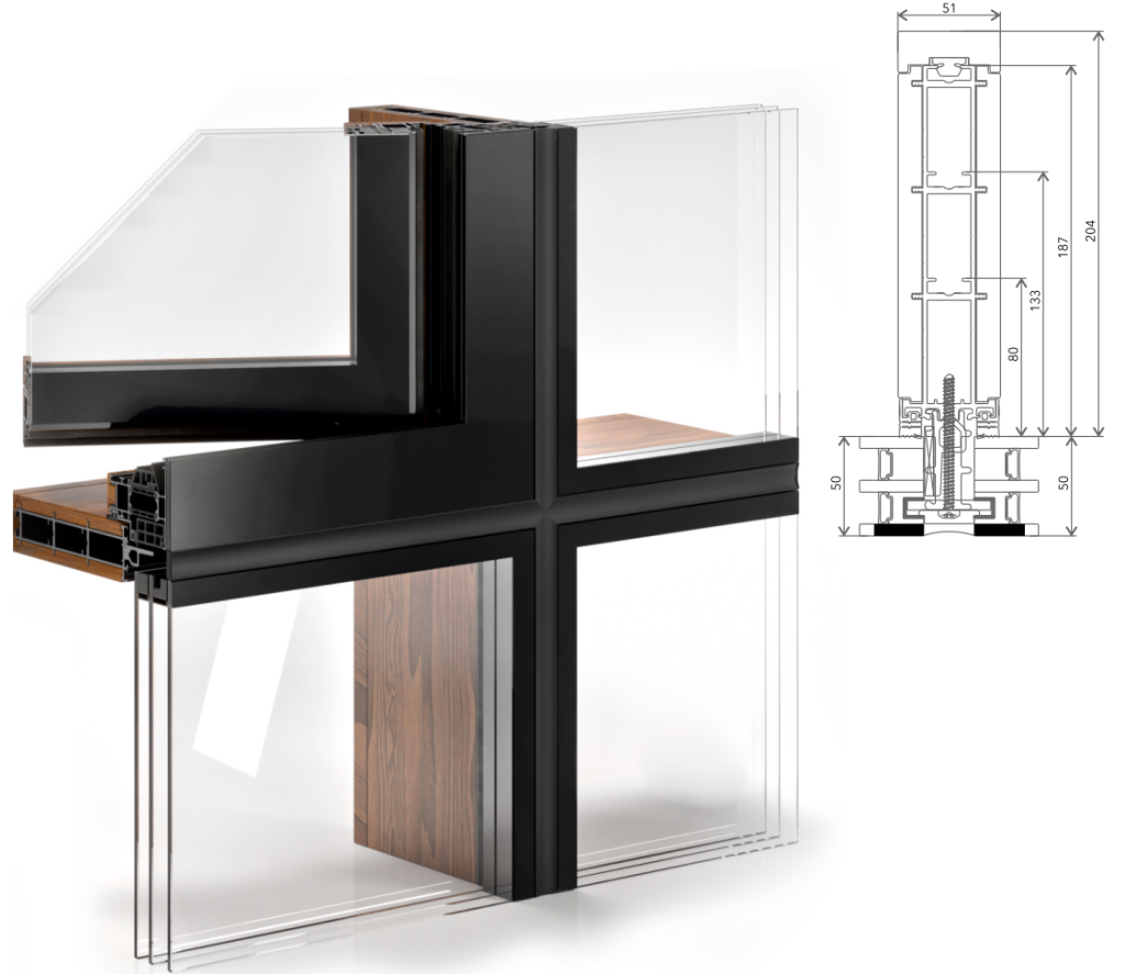 Система ODR.AL.W.SPS-204 Slim представляет собой дерево-алюминиевое решение для структурного фасадного остекления.